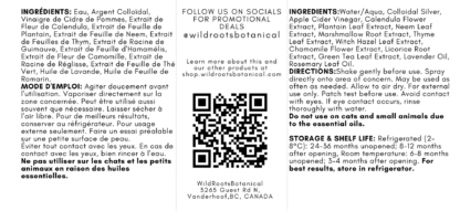 Aqua (Distilled Water), Apple Cider Vinegar, Colloidal Silver (10 ppm), Calendula officinalis (Calendula) Flower Extract, Plantago major (Plantain) Leaf Extract, Thymus vulgaris (Thyme) Extract, Althaea officinalis (Marshmallow) Root Extract, Hamamelis virginiana (Witch Hazel) Leaf Extract, Matricaria recutita (Chamomile) Flower Extract, Glycyrrhiza glabra (Licorice) Root Extract, Camellia sinensis (Green Tea) Leaf Extract, Lavandula angustifolia (Lavender) Oil, Rosmarinus officinalis (Rosemary) Leaf Oil, Thymus vulgaris (White Thyme) Oil.